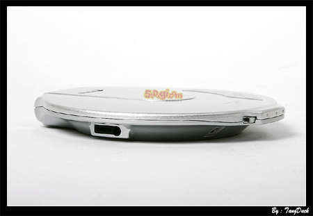 D-NE10的外观可以说给我的第一印象就是一大惊喜,其设计真的令人有种意想不到的感觉,虽不说是不是每个人都赞同,但无可否认,D-NE10的设计的确非常独特,咋一看过去十足一太空飞碟,放在桌子上平看,像一个碟、碗、铁饼?……唔……D-NE10给人以许多遐想,看来这也许是设计师的初衷吧,喜欢不喜欢就见仁见智了。D-NE10有银色、黑色、金色三种,都以光面烤漆作面,机身大小尺寸适中:127.0×132.7×17.7mm,重量为148克,较IMP550来说这块铁饼仍是厚了些。另外D-NE10开盖方式也有所不同,以往的一键弹盖式设计已改为两边卡口式设计,使用起来还真有些不太习惯。电池方面D-NE10如同D-EJ2000一样使用一节镍氢电池,外接电池盒这次也一改以往的连接方式,改用了像松下CT780那种上螺丝的设计,对于D-NE10这种飞碟式的设计的确较为适合。不过因为只使用一节镍氢电池,因此最长的播放时间是80个小时。
