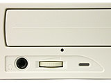 驱动器采用了舱门与托架一体化的设计,并且在舱门上我们看不到过多的修饰,右侧只有一个简单的DVD+RW Logo。而舱门下方橙色的NU Logo恰到好处的点破了通体白色带给人的单调之感。在驱动器的左下角我们分别可以看到耳机插孔、音量旋钮与指示灯,右下角则为两个按键:音频控制与出舱键。