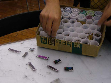 图为:实物大小的各种端口纸板,用于检讨ThinkPad设计上失误