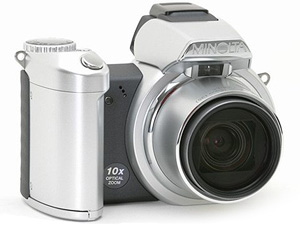 装备2/3英寸500万有效像素的CCD图像传感器,最大成像分辨率为2560×1920。使用美能达7倍光学变焦GT镜头,最大光圈为F2.8(W)/F3.5(T),快门速度为1/16000-30秒,焦距范围相当于传统35mm相机的28-200mm,16片13组,其中包括2个AD和2个非球面镜片,加入的超低色散(AD)镜片可以有效地纠正色差。装备可调整角度的LCD显示屏和EVF电子取景器。LCD采用双铰链系统和奥林巴斯的E-10/E-20非常相似,可以调节LCD向下约20度和向上90度,尽管没有佳能G5那样好用,但是也算是不错,为1.8英寸11.8万像素。值得表扬的是内置式23.5万像素的0.44英寸精确EVF电子取景器,可以进行大角度的调节,进行取景拍摄感觉相对舒服。使用最新7.4 V,1500 mAh的NP400可充电式锂离子电池,标称可以连续拍摄330张照片或连续播放300分钟,使用BC-400充电器充满电池需要150分钟。在实际使用中确实表现出色,连续操作4个小时依旧坚挺。支持CF I和II型存储卡,以及微型小硬盘,支持FAT32格式化,最大支持存储容量达2GB以上,建议购买微型小硬盘,这就不必担忧大量拍摄而出现的存储空间不足的遗憾。