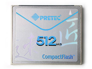 这次我们拿到的是一块PRETEC “速匠”512MB高速CF卡和一块PRETEC 3GB TypeⅡ型高速CF卡。