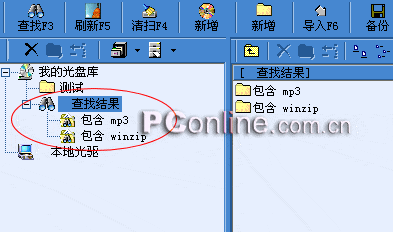2、 搜索文件 在五个软件之中,庖丁光盘管家是唯一一个可以记录搜索结果的软件。
