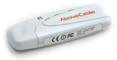 这也是一款在外型上酷似U盘的无线网卡产品,它是由北京宽讯推出的AboveCable Smart USB(Model:ACPC1600-11)无线网卡,采用了新型、小巧的外型设计,支持点对点、点对多点的无线访问。同时,它支持高达11Mbps的传输速率,功耗低,而且具有多频道漫游功能。