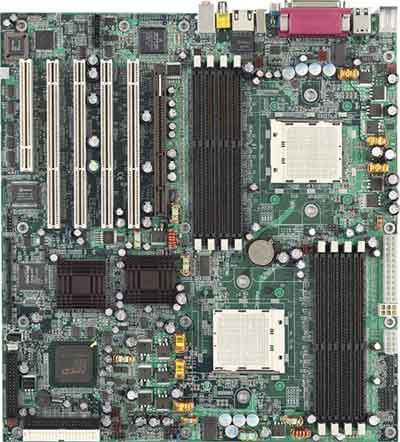 这种设计的代表有Tyan刚刚推出的Thunder K8W主板,如下图: