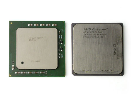 两款主机分别采用双Opteron242以及双Xeon 2.4G处理器,下面是它们的对比图: