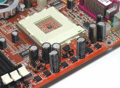 值得一提的是,KV7采用的是三相电源,被设计在CPU插槽的外侧,日本Rubycon电容显示了NF7在用料上是很考究的,大量的电容确保系统稳定运行。与少数超低价位的KT600主板不同,KV7采用VT8237南桥芯片,因此能够支持SerialATA RAID功能。此外,KV7在价格方面也十分吸引人,目前已经不足600元,性价比值得肯定。