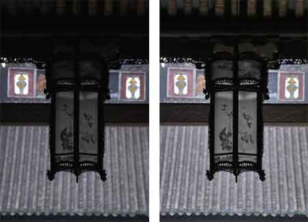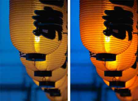 图为:尽管白平衡有点不尽如人意,色彩饱和度和还原方面却的确有胶片的效果。左边图片为日光,右边图片为白炽灯