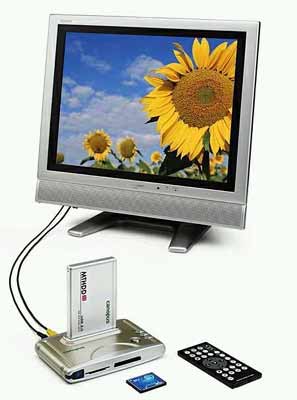 Canopus将于2004年1月上旬上市一款可以使用电视机来播放MPEG影像的硬盘式播放机“MTPlayer MP20-HDD”。通过连接电视机,该播放机可播放保存在外置硬盘和存贮卡中的MPEG影像文件。将硬盘装入专用盒中后,通过一控制按钮将其装入主机。