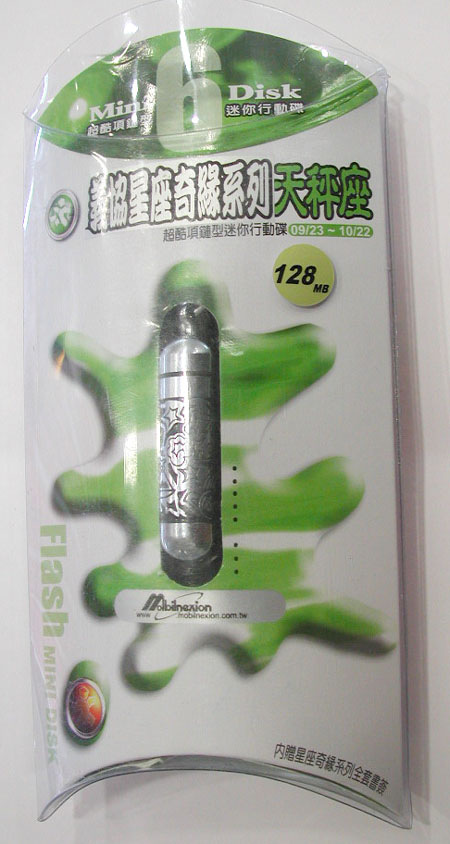 义协星座系列闪盘的容量是128M,接口采用了USB1.1,产品尺寸为:长5.6厘米,直径1.6厘米。