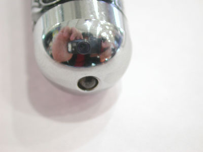 取出闪盘仔细观察,在闪盘的一端有数据指示灯,当接电读取数据时会发出蓝色的光线,十分漂亮。