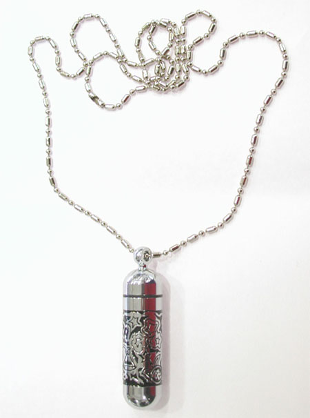 如果不是在电脑城里看到它,我会以为这是一件精美的艺术品,金属的光泽,镂空的花纹,纤细的挂链,丰富的内涵,但这的确是一款闪盘,一款可以带在脖子上的艺术品。