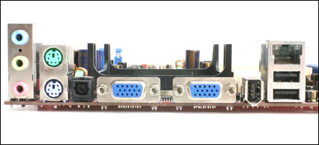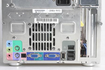 iDEQ 200N接口相当齐全,在前面板上除了有电源开关和复位键外,还有两个USB接口,一个IEEE1394接口、一个光纤输出接口和麦克风/耳机接孔。背部则是6声道声卡输出、PS/2键鼠口和同样是输出的光纤接口、两个VGA输出接口和火线、USB、网卡接口;接口丰富一直是准系统的卖点之一。