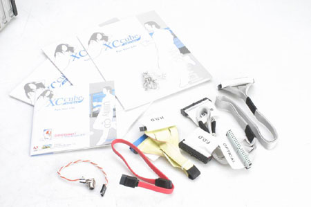 带提手的包装箱似乎即将是未来IT配件的潮流,受到越来越多厂商的使用。附件中可以看到有说明书、驱动光盘硬盘、软驱数据线和一个可以连接主板的RCA头。