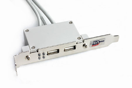 微星PT880 Neo-LSR主板的usb2.0扩展槽十分有意思,微星将这个部件命名为D-Bracket,此模块是对D-LED机制的补充,把D-LED引向机箱外部,不开箱也能对内里硬件工作情况一目了然。以4个灯为一组的D-LED可以发出红、绿的16种颜色交叉汇编,藉由这些灯号显示来查表,就可以得知是那一个零部件出了问题,以此进行排错。不过,将这个扩展槽设置在机箱背后的意义不是十分大,如果将这个扩展槽做成软盘驱动器面板大小,通过螺丝直接固定在软盘驱动器或者5寸驱动器的位置上,成本的增加不大,但会取得更好的实际使用效果。