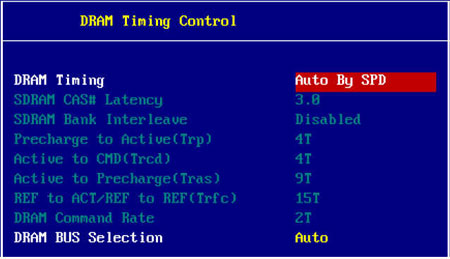 内存调节页面,基本上和常规的选项无疑,最后的DRAM BUS Selection则提供了自动、单通道、双通道的强制选项。