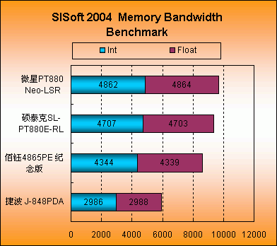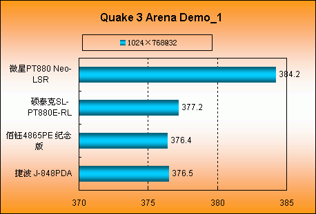 另外,我们知道PT880里有类似PAT的选项。在CPU的基准测试中,我们关闭了所有动态超频的选项,两者的实力实在接近,寥寥数分的差异排除误差均可认为测试成绩基本持平。通过提供对此测试成绩,参评的两块PT880成绩远超865芯片组下的3.2G Pentium4。VIA在主板研发的功力实在不容忽视。