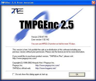 TMPGEnc是日本人堀浩行开发的一套MPEG编码/工具软件,支持VCD、SVCD、DVD等各种格式。该软件不光生成的MPEG文件的图象质量非常好,而且还是免费软件(注,Plus版本是收费的)。我们测试的是一个26.6MB的文件,参数选择为“Non-interlace,4:3,625line(PAL,704×576)”。