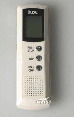 KDL-P85小巧玲珑,体积相当于半盒香烟,身轻如燕,不含电池时只有35g。KDL P85外观设计的非常简洁,按键较少,所以操作略显烦琐。播放与暂停是同一个按钮,按下播放键播放当前的曲目或语音信息,长按前进或后退键,可以进行选曲;在放音状态下,短按前进或后退,可以调整音量大小。音量指示段,均分为三节,即按三下指示变化一节。KDL P85的录音效果一般,音质损失较多,但超长的录音时间,省电,以及价格低廉的优势完全可以弥补这些不足。