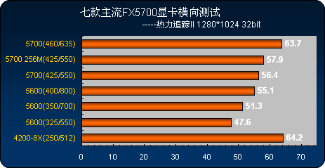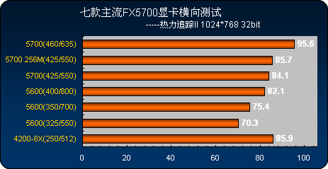 我们曾很多次使用这款游戏作为显卡测试工具,因为热力追踪II有很好的人缘,很多人硬盘里面都有这款游戏,并且这款游戏不同硬件环境下FPS差距明显,具备最基本的测试游戏素质。作为一款DX8的游戏,4200-8X显示出了强大的性能表现。