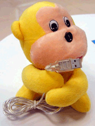 乍一看,你可能觉得这只是一个可爱的绒布猴玩具而已,不过等闲要告诉你,其实这个顽皮的小猴子是一个不折不扣的数码摄像头!不可思议吧!这种将可爱的毛绒玩具外形与数码摄像头相结合的设计,为我们平常的生活增添了一抹天真童趣,相信一定能吸引不少MM的眼球。