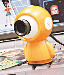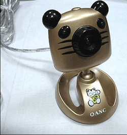 上面那只“猫咪”很“卡哇仪”吧,呵呵,还有更可爱的呢!下面这款摄像头的外观采用的是我们的国宝??熊猫的造型设计,并且它还充分利用了卡通熊猫的外形特征,在“熊猫”的眼睛里安装了两个状态指示灯,当它与电脑连接后就会闪耀出绿色的亮光,仿佛在提醒你:“我在工作!”而高像素的摄像头则被巧妙地设计在“熊猫”的鼻子里;快门键被设在“熊猫”头顶上。这款卡通“熊猫”摄像头制作小巧、精致,与那些外观设计略显单调的摄像头相比,很是抢眼,很合乎现在时尚MM们口味。