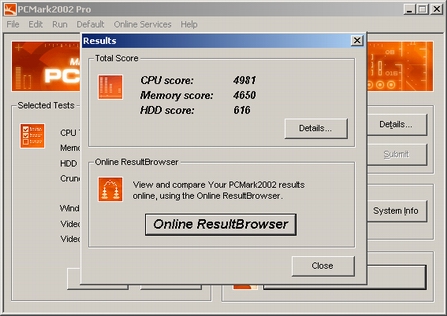 首先带来的是PCMark2002的测试结果。如上图所示,Pentium M 1.5GHz搭配855PM芯片组后达到接近5000分的成绩,同时硬盘性能也值得一赞,Joybook 5100采用的是富士通型号为MHT2040AT的硬盘,虽然只是4200rpm/2MB Cache,但616分的表现足以把大堆400多500分的笔记本打倒。SiSoftwareSandraPro 2003的测试成绩如下表所示。