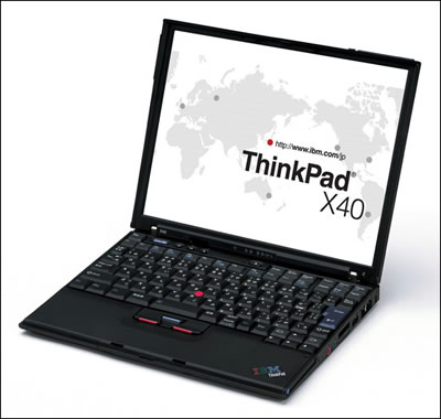 X40可以说是T40/T41的迷你版本,有ThinkPad中最轻薄的身材,显卡性能也要胜过X31,但是受限于追求轻薄的设计目标,采用了超低电压版本CPU和1.8英寸盘片硬盘,这限制了它的整体性能。X40是现役ThinkPad机种中唯一采用超低电压版本Pentium-M CPU的机型,而且是第一款采用1.8英寸盘片硬盘的ThinkPad, 这和它追求高度便携性是分不开的,由于机身设计的改变,X40有大量的专用配件,底座为全新设计的UltraBase X4,和以往X系列的底座并不兼容。