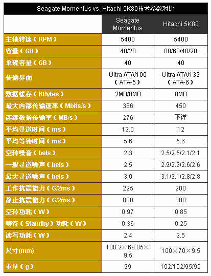 我们这次测试的是40GB版本??HTS548040MSAT00,在市场上是希捷Momentus ST94811A的正面对手,两者的技术参数是十分接近的。