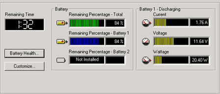对于笔记本硬盘而言,功耗是人们的焦点之一。由于我们测试设备所限,不能很准确的测得硬盘的实际功率。但使用IBM的Ultrabay Slim硬盘架,在系统中对硬盘进行开启和关闭,比较前后电池的输出功率之差我们可以粗略估算硬盘的功耗。电池输出功率是通过IBM的Battary MaxiMiser获取的。