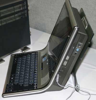 “大众”这个品牌展示出来的实力的确是非常的强。在此次2004 CES大展上,大众FIC展示了众多的新品,其中一款将键盘、主机、液晶屏整合在一起的一体机产品相当引人关注。这款产品的外型非常小巧,整体采用流线型设计,给人的感觉就像是年轻女孩子们最喜欢穿的高跟鞋一样,十分的特别。它采用了Athlon XP处理器的整合系统,性能方面也很不错。据了解,该产品在日本上市以后就十分受欢迎,可惜的是其价格几何目前还不得而知。