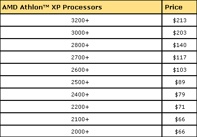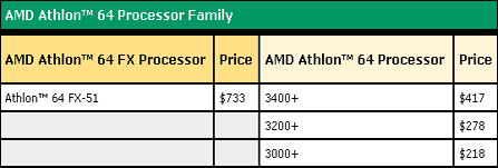 Athlon64 3400+发布 AMD最新价格出炉(图表)