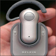 Antonio的挂颈式蓝牙耳机BT25 Belkin的蓝牙耳机和它的充电座