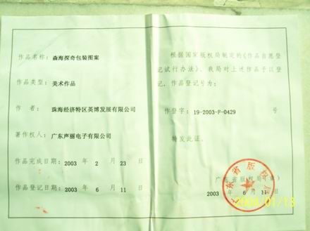 这是另一份证明,出自于广东省版权局。