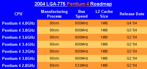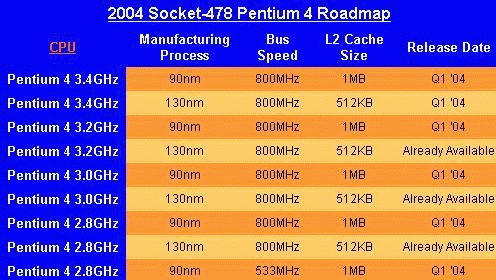 3.4GHz的奔腾4处理器将是Intel最后一款Socket 478接口的产品。同时,Intel还将推出533MHz FSB的奔腾4 Prescott处理器,90nm制程,不过不会支持超线程技术。