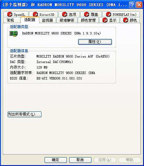 采用了128MB独立显存的Mobility Radeon 9600显示芯片,这应该是目前投入使用的最强的笔记本的显示芯片,在3DMark2001SE的默认模式下测试成绩超过10000分,在笔记本电脑中算是出类拔萃的了。