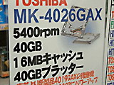 本周东芝在日本市场拿出了自己的高端笔记本硬盘产品,这款型号为MK4026GAX的笔记本硬盘新品按照5400转转速设计,16MB超大容量缓存甚至让常见的台式机硬盘都相形见绌,单碟容量40GB,总容量40GB,目前这款高端笔记本硬盘产品在日本市场的零售价格为13980日元,折合人民币约为1100元左右。