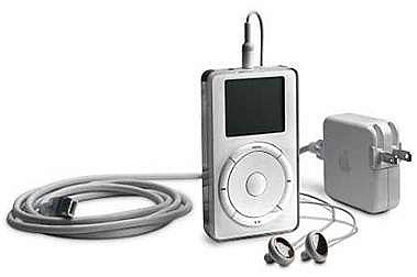 苹果创新与开放式思维的代表设计使得其声名远播,Apple iPod的外型设计同样充分展现出Apple公司一贯的设计风格和理念。Apple iPod的外观被设计的非常简洁明快,外形呈现长方形,正面是纯白色的亚克力面板,有一个透明层显得晶莹剔透,感觉非常清新典雅,上方是一个2英寸超大屏幕白色的不锈钢控制面板,分辨率达到160×128,一次可清晰显示6行文字,并具有银白色背光功能,亮度和对比度可以调节;iPod的外型尺寸为4.02英寸 X2.43英寸X0.78英寸,整机重量约为180克左右,其中还包括一个锂聚合电池,该电池能够在音量最大的情况下支持连续10小时的播放。