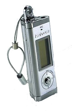 当iFP-180TC映入你的眼帘的时候,首先给你的第一感觉就是??COOL!银灰色的机身,约31X28.5X82mm,重约为30.9克(不包括电池),机身身两侧和中间的显示屏是银色的镶边,圆形的飞梭按键在机身面板的右侧,机身为圆角的三角形,左侧有个可以转动的吊环,一条银色的线吊着,可以挂在颈上,更显时尚;播放、EQ/A-B、录音按键和HOLD开关分别在机身的上方和下方,液晶显示屏的背光为黄绿色,和机身的颜色搭配非常协调。