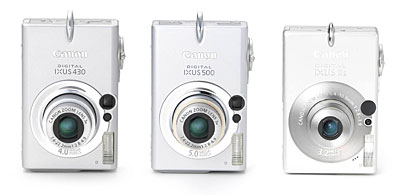 IXUS 系列的三款产品,从左到右分别是IXUS 430、IXUS 500、IXUS IIs(亚洲区命名)