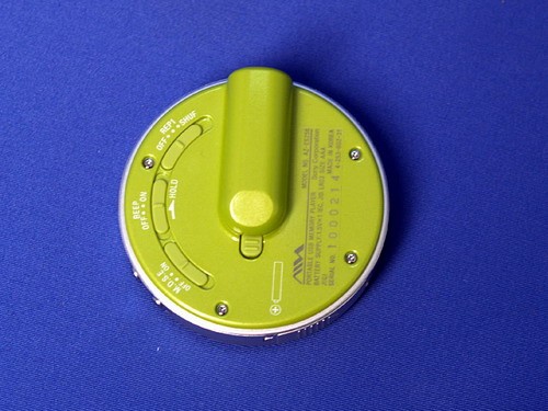 另外,背面左半圈弧形分布了三个推位,分别是:m.d.s.e(MP3 Digital Sound Enhancer)功能,直译为MP3数字声音加强;BEEP声音开关,这里沿用了爱华一贯的设计;REP重复模式开关。机器背面印着原产地:韩国。