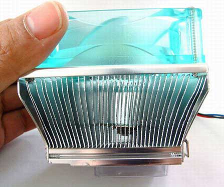 根据当时的会议介绍:这款卡西摩多P4散热器是支持INTEL P42.8GHZ的新产品。它主要的特点是采用超静音设计,并且由于采是超低转速,从而可以大大节省电耗,延长风扇的使用寿命,还有另外一个特点就是采用了倒挂设计,使叶片出风离散热片更近,增强风压,达到最佳散热效果,看来此款风扇借助本次盛会在将来的市场上影响肯定不小。