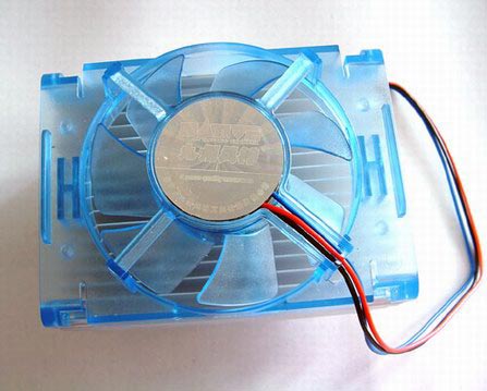 风扇和散热片的搭配还算是比较整洁,风扇采用了倒挂设计,使叶片出风离散热片更近,增强风压,达到最佳散热效果。但笔者曾经有所怀疑的就是,这样的构造究竟能不能防护灰尘的侵害呢?