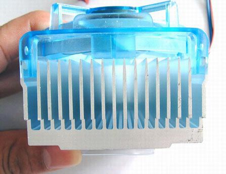 2、我们采用的是一块Barton的XP2500+,功率在70W左右,其实这样的发热量对其散热器的考验并不大.所以我们决定超频.我们也将XP2500+处理器OC上实际频率2.2G左右,保守估计功率也是有90W以上的。
