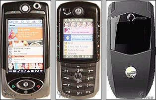 图为:摩托罗拉三款新手机:A1000、E1000及V1000