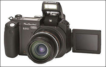 最后出场,当然最优秀。佳能PRO1,自PRO90IS后,再次推出的佳能PRO系列机型。兼容佳能全EX系列闪光灯,可旋转LCD,28-200/F2.8-3.5的镜头。从晚上流传图片上看,PRO1很有可能将使用佳能顶级的L系列镜头。要知道,世界上最好的几只都是佳能L镜头。这次PRO1绝对令人期待。