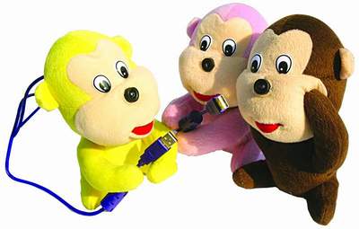 咋眼看上去,没人会把它跟冰冷的电脑器件联系在一起,可是,它就是实实在在的摄像头。它的设计得相当独特:猴子的鼻子上有个盖子,盖子揭开就是镜头。而猴子的尾巴则是USB连接线缆的所在。此外,猴子的双手呈合拢状,您除了让它“坐”着以外,还可以让它“抱住”一些物体以固定。今年又是猴年,可谓应景之至。