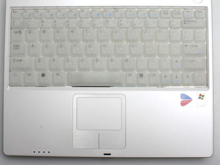 最后来看看M5200N另一大突出特色的TouchPAD鼠标以及白色半透明的键盘。M5200N的TouchPAD设计,在风格上有比较大的创新,无痕式触摸板设计,也是华硕的一大专利设计。一个金属质感的外框巧妙的与左右键合二为一,触摸板则与金属外框、腕托处于同一水平面上,这样大概不会再有人说触摸板会藏灰尘了吧:),在测试操作时,也倍感这种触摸饭确实要比较传统的舒适些,同时,感观上也觉得很美观、和谐。键帽采用半透明塑料,看上去晶莹剔透。键帽采用X型塑料支架,加上约3mm的键程,所以在按键时噪音相当小,敲击的手感也很舒适。