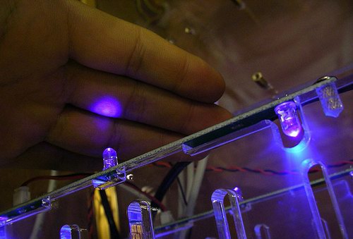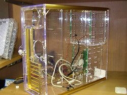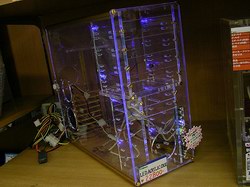当你看到这款机箱没有被点亮的时候,和一般的透明机箱没有什么差别,但是当你接通电源的时候,就会感到差别很大,12个被安装在驱动器槽位附近的发光 LED 同时照亮机箱,就像是机箱本体在发光一样,反射的颜色将整个箱体衬托的相当漂亮。这种 LED 是被设计用来照亮机箱部分区域的,只能用于透明机箱产品上。