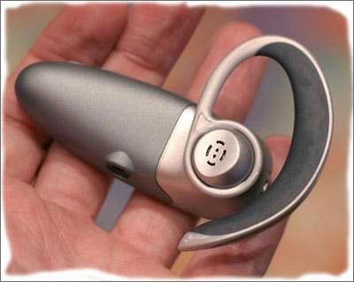 ??在PC外设上大放异彩的罗技在收购了Labtech这一音响设备生产大厂后也把自己的触角伸向了耳机这一块处女地。不过它推出的Mobile Bluetooth Headset从外形上还是摆脱不了浓浓的“PC”味,圆形的听筒设计的很大,配上细长的话筒第一眼就给人一种耳麦的感觉。耳机的顶部有这十分宽大的音量调节键,操作很方便。在听筒周围有一圈柔软的海面,佩带起来牢固而且舒适。