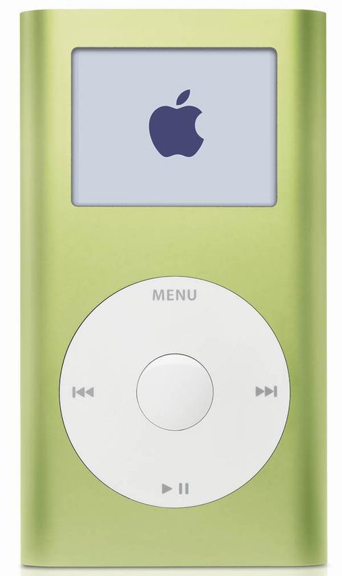 iPod mini是目前即将上市体积最小巧、可以存储超过1000首CD品质歌曲的便携式CD播放器,这款定价为250美元的iPod mini有银色、金色、粉红色、蓝色以及绿色外壳可选,内置的硬盘容量为4GB。随机的配件包括了皮带夹和耳机等,不过依然不包括线控器。如果客户有需要的话,可以另付20美元在主机上加上激光刻字(最多两行、每行23个字母)。